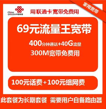 包含400分钟通话,400个G,40个G流量。一条家用宽带,